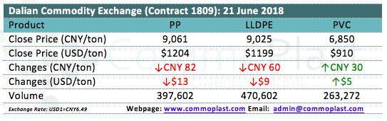 Dalian Commodity Exchange: 21 June 2018