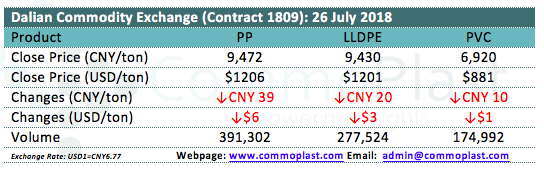 Dalian Commodity Exchange: 26 July 2018