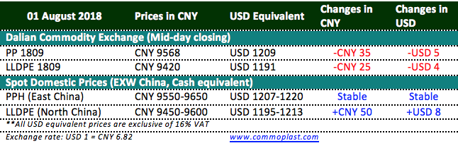Dalian CommodityExchange opened on a firm notes, yet retreated sharply by the end of the morning session. The development does not immediately pulling spot market down as local producers continue to maintain spot PP and PE prices on the stable to firmer track.