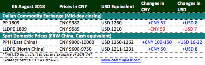 Total inventories at Sinopec and CNPC’s warehouses piled up 45,000 tons from last Friday to 710,000 tons as on 06 August 2018.