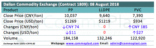 Dalian Commodity Exchange: 08 August 2018