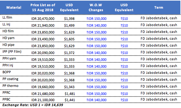 Indonesian producer lifted local PP, PE offers on exchange rate