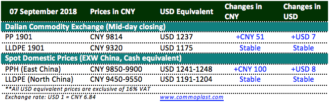 Total inventories at Sinopec and CNPC’s warehouses reduced 25,000 tons from yesterday to 740,000 tons as on 07 September 2018.